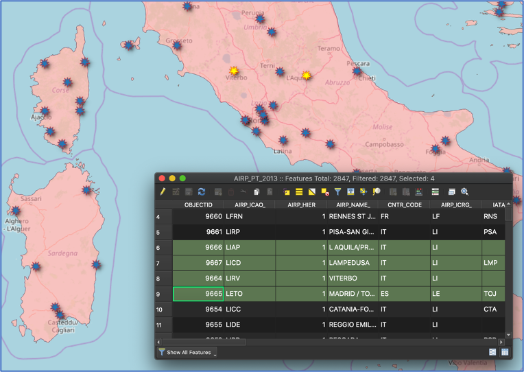 For example, you could have a dataset of cities, represented as points, and the attribute table might contain characteristics of the city – population, median household income, etc.