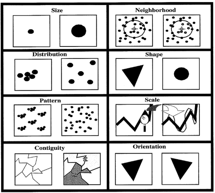 Each feature – point, line, or polygon – is dynamically linked to the “attribute table” or set of variables