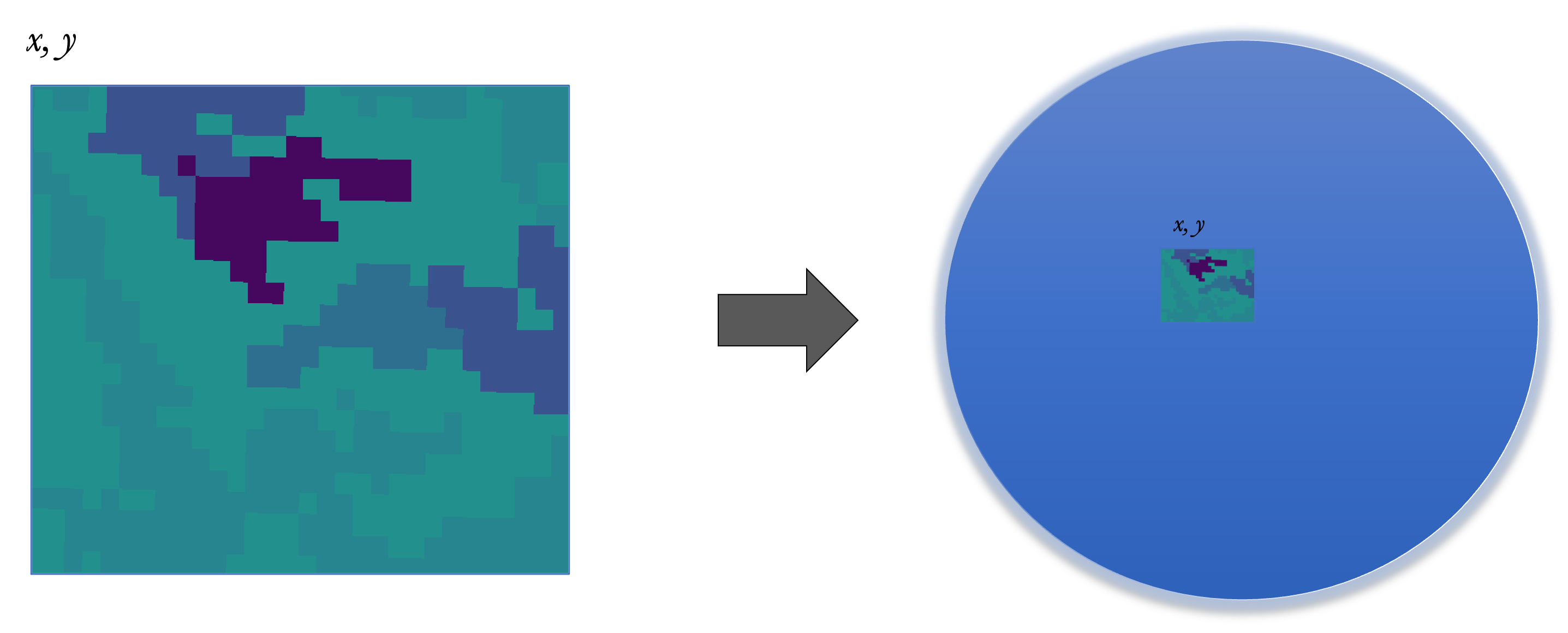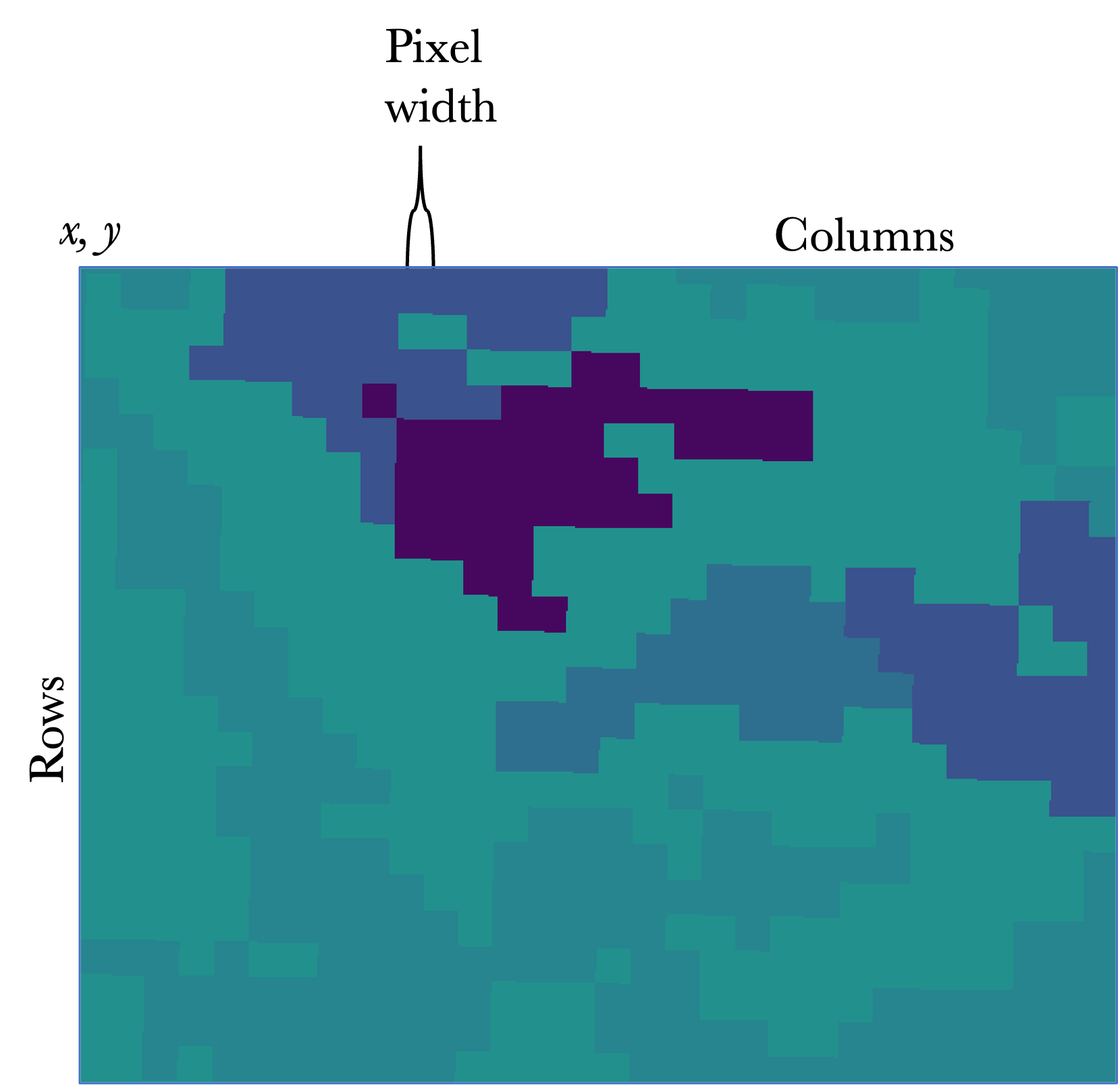 So long as the x, y location is georeferenced (placed on the surface of the earth), we can locate each other pixel, too